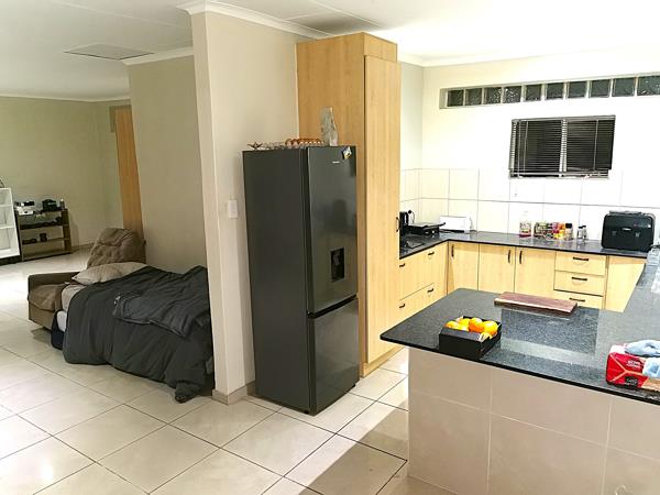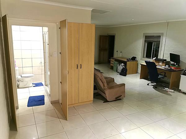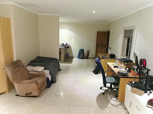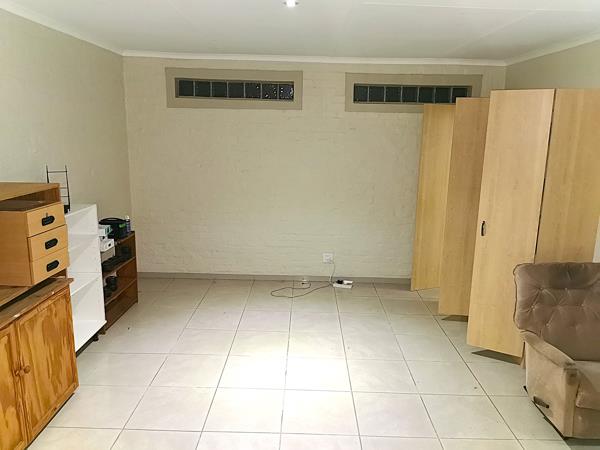 This very secure 1 bedroombachelor unit is perfect for a single person only. The landlord is staying on the erf as well and that gives extra security. The unit offers an open plan space to the kitchen and a garage. The bathroom is en-suite to the sleeping area. There is an induction stove in the kitchen so remember your pots to be used on an induction stove. The following conditions are for safety reasons like no gas stoves. The Spar in Willem Botha is close by. Regrettably no cats or dogs. Exotic pets will need permission from landlord.