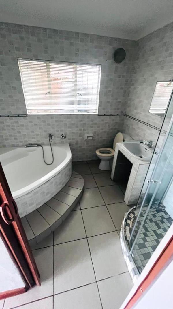 Large tiled Bathroom with a Corner Bath, Basin, toilet and Shower
