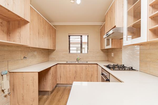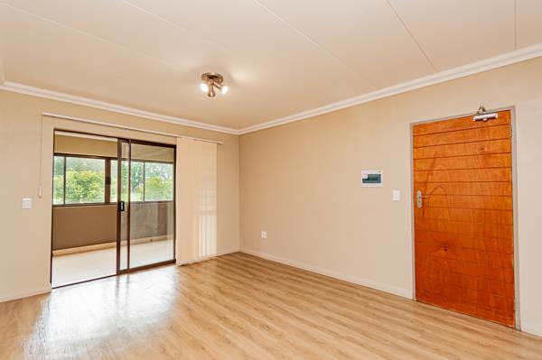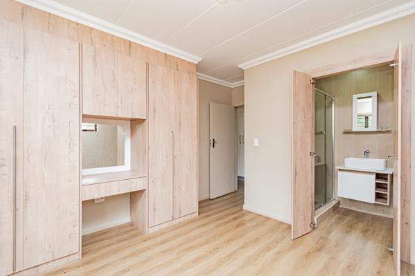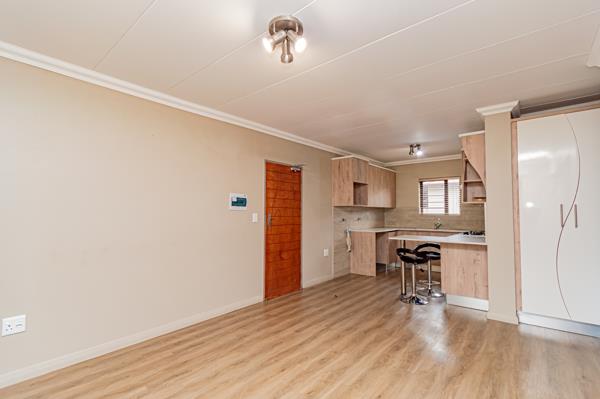 Two bedrooms with built in cupboards and two bathrooms, one with shower, bath tub, basin and toilet and the second en-suite with shower, basin and toilet. The open plan loungekitchen leads to a lovely indoor braaientertainment room . The kitchen is fitted with a breakfast nook, BIC, space for two electrical appliances and a single or double door fridge. Dry yard with washing line, storage for gas bottles and other extra items.
