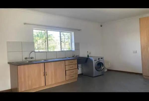 The home boasts a well-appointed kitchen with ample cupboard space, a separate scullery, and easy access to the living and dining areas.