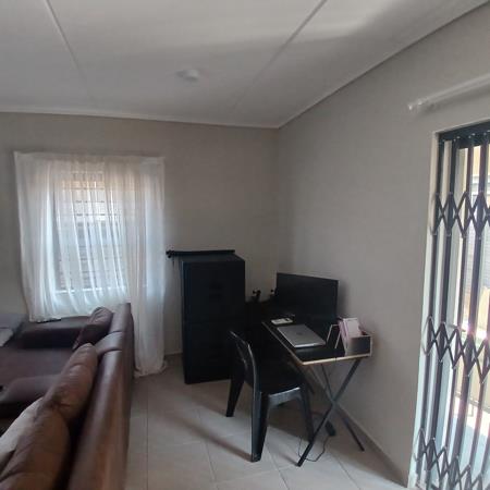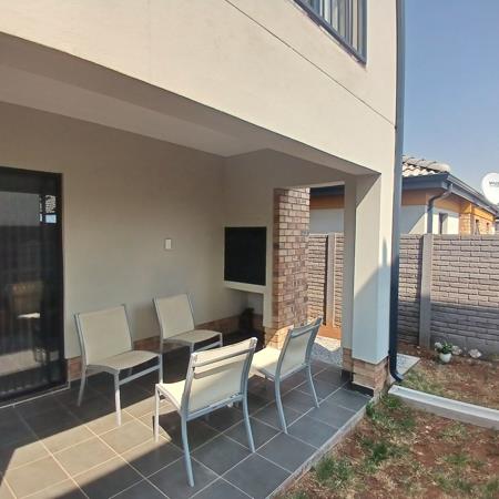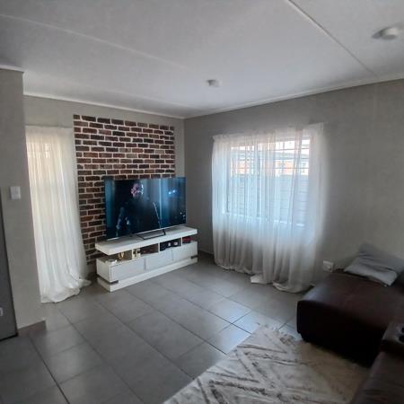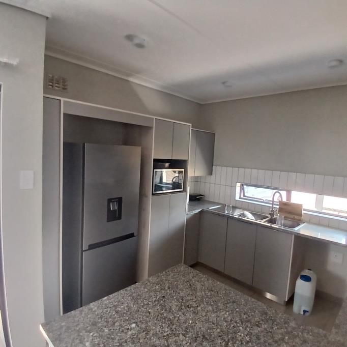 Discover modern living in this inviting three-bedroom, two-bathroom home available for rent within a secure estate in Albertsdal, Alberton. Designed for comfort and convenience, this residence features an open-plan layout seamlessly connecting the lounge and dining areas, both adorned with durable tiled flooring. The contemporary kitchen is a highlight, boasting sleek grey cabinetry, speckled granite countertops, a white subway tile backsplash, a built-in gas hob, oven and extractor fan, along with dedicated spaces for a large refrigerator and microwave. An additional study provides a versatile space for work or hobbies, while a guest toilet adds to the home''s practicality. The living area is further enhanced by a stylish faux brick accent wall and large windows that invite ample natural light.