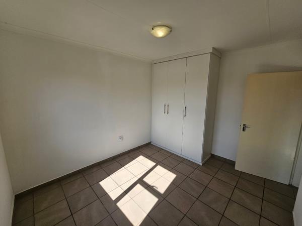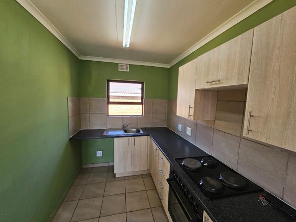 This modern and cozy 2-bedroom, 1-bathroom townhouse offers comfortable, low-maintenance living in a secure complex. The home features an open-plan lounge and kitchen with an under-counter oven and hob, plus built-in cupboards in both bedrooms.