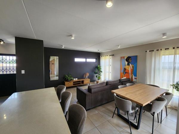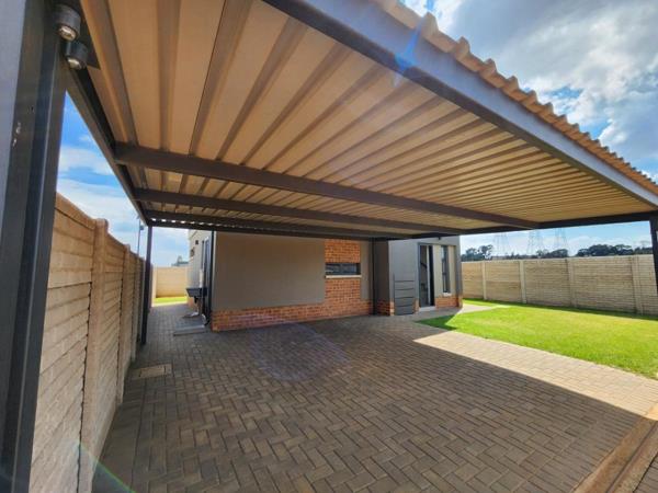 Stunning 3-bedroom, 2.5-bathroomsmain en-suit with walk in closet and a study. This New home is fully tiled,with modern finishes - spacious ground floor living area which is open plan with the kitchen and scullery. Big garden with covered entertainment area with built-in braai.