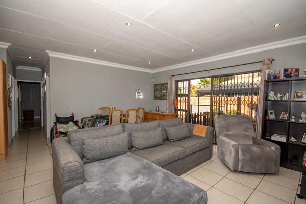 Additional highlights of this property include a massive private landscaped garden with a charming patioideal for outdoor relaxation or entertaining. Security is a top priority, with electric fencing surrounding the complex. Parking is a breeze with one automated garage that offers drive-through access to a carport at the rear.