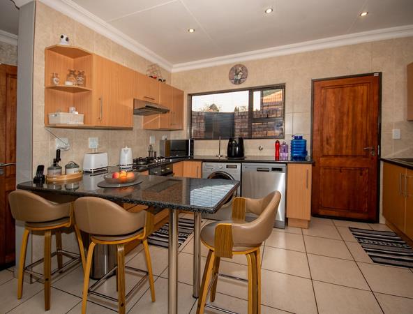 Step inside to discover a beautifully tiled open-plan lounge, dining room, and kitchen area. The kitchen is a chef''s delight, featuring granite countertops, a convenient breakfast nook, a 4-plate gas hob, and an electric oven. There is also space for two appliances, making this kitchen as functional as it is stylish. All windows are fitted with elegant blinds for added privacy and aesthetic appeal.