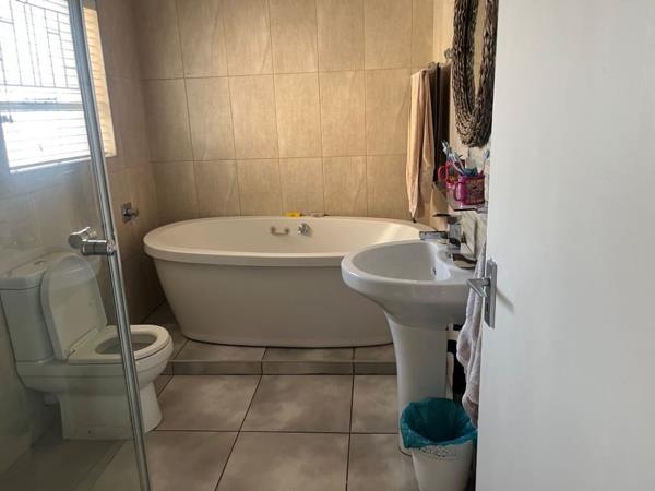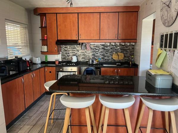 Spacious pet friendly family home offering 3 bedrooms (tiled with Build in cupboards), 2 bathrooms one en suite. Open plan kitchen (gas stove and granite tops) leading to lounge and dining area (sliding doors and tiled). On the 3rd floor you have 2 spacious loft areas with wooden flooring. The property also offers a private garden with braai area with swimming pool and to top it off a double garage with 2 additional carports.