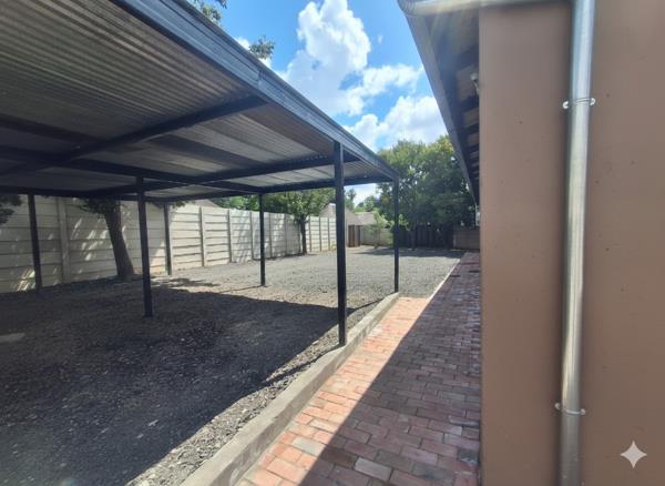 The exterior boasts a modern aesthetic with a well-maintained green lawn and a brick pathway. The property sits on a generous 700 sqm erf, providing a private garden space. Parking is abundant with two dedicated parking bays, including a covered carport, ensuring convenience and protection for your vehicles. The property is totally walled, enhancing privacy and security.