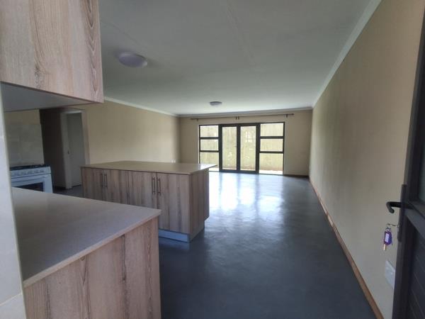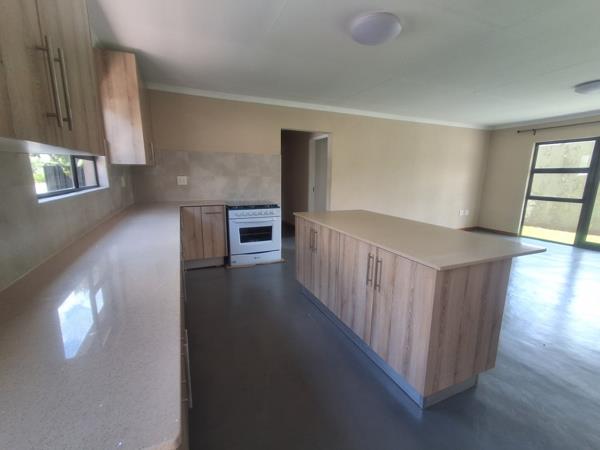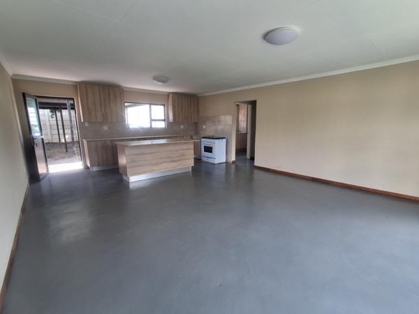 Discover this modern and inviting 3-bedroom, 2-bathroom rental property located in the desirable Benoni Small Farms. This home offers a spacious 125 sqm floor plan designed for comfortable living. The open-plan layout seamlessly connects the lounge and kitchen, featuring contemporary light wood-grain cabinetry, a large kitchen island with ample counter space, and durable dark grey polished concrete flooring. Large glass doors flood the living area with natural light, creating a bright and airy atmosphere. A brand new freestanding stoveoven is included, ready for installation.