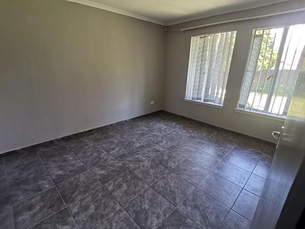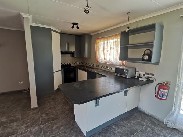 Ready to move in, freshly painted and tiled house with 3 bedrooms, 2.5 bathrooms, an open-plan living area and double garage. The property includes a motorized gate, alarm system, razor-wire fencing, and a builtin braai. Prepaid electricity metre. Deposit of R10,500 required.