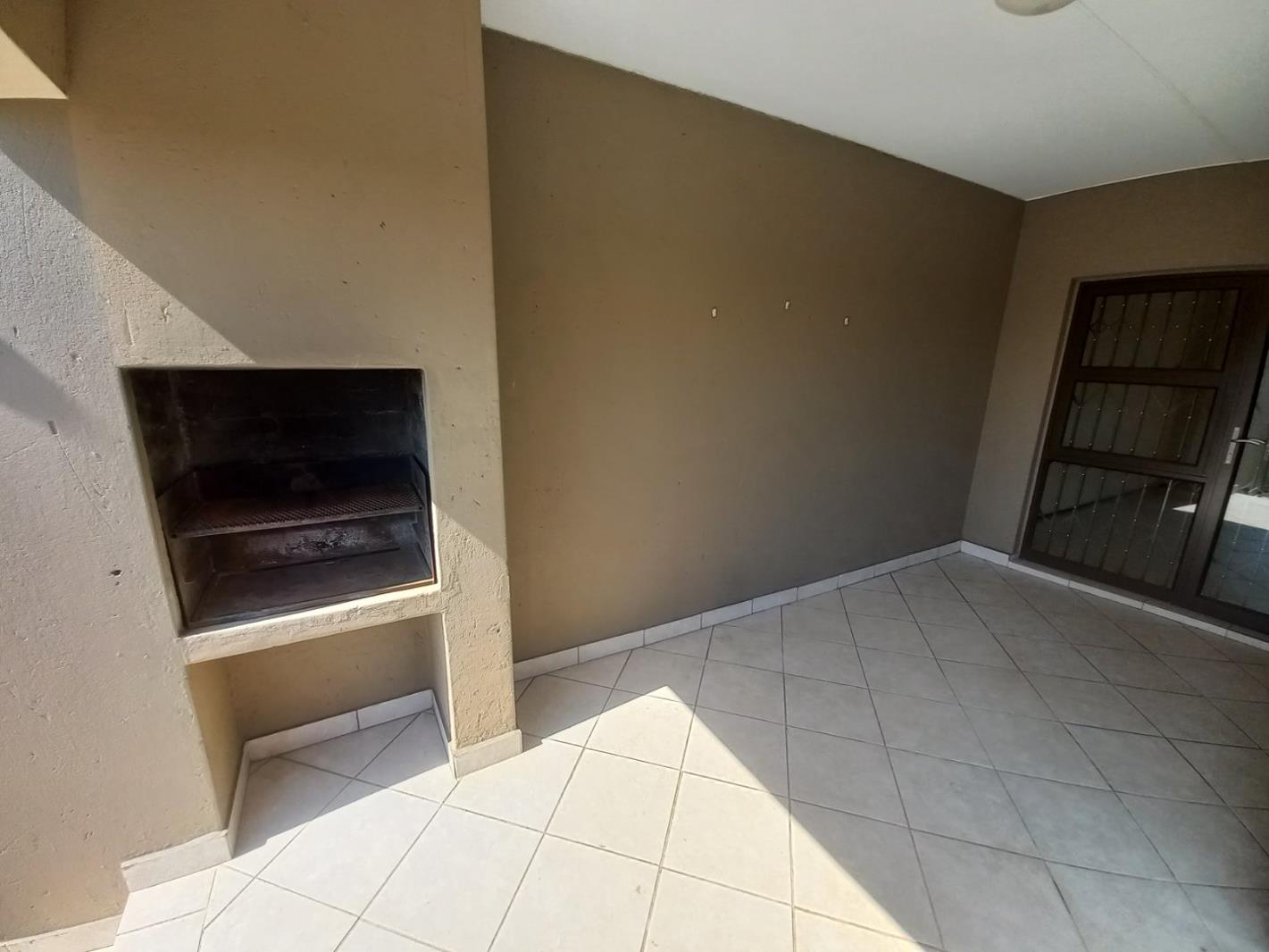 The unit features a well sized patio with a built-in braai which is perfect for a baroutdoor dining room set just off your front door.