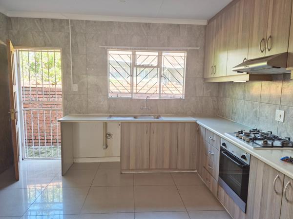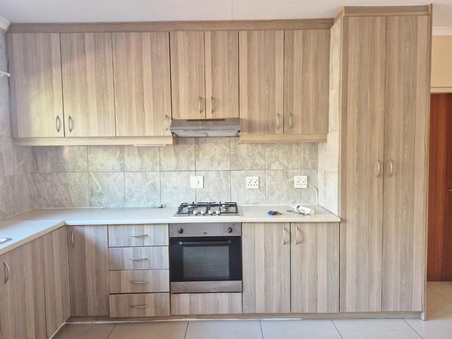 A functional kitchen has built-in cupboards with a gas stove tenant to provide their own gas bottle