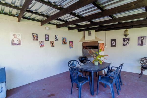 The kitchen has ample cupboard space with a gas hob and oven. A small vegetable washing sink, space for a single fridge and a scullery. The scullery has a dual sink and space for three appliances. This then leads you to your large backyard which also has a covered seatingentertainment area outside with a built-in braai.