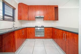 Secure 2 bedroom 2.5 bathroom pet friendly face-brick duplex in Rynfield. The spacious main bedroom has a balcony and en-suite bathroom with a shower. Sizeable bright second bedroom is opposite a lovely tiled bathroom with a bath tub. Both bedrooms have laminated flooring and built in cupboards. Open-plan lounge and dining room onto to the neat kitchen with granite breakfast nook. Kitchen has a stainless steel 4 burner gas top with electronic hot plate, electric under counter oven and extractor fan. Guest toilet downstairs. Direct access from double garage to dwelling. Includes garden service. Pre-paid electricity, solar geyser, solar inverter system & gas hob. Space in the kitchen for fridge, dishwasher and washing machine. Blinds in the bathrooms and kitchen. Excellent security with downstairs security gates at entrance and on sliding door plus all windows are fitted with burglar bars as well as blinds. Well situated opposite Linmed private hospital and close to schools. Fibre ready/pet friendly complex.