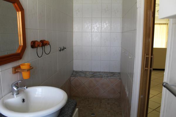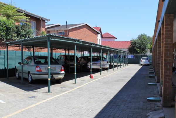 The bathroom is thoughtfully designed with a large, walk-in shower, a basin, and a toilet. For your convenience, a covered carport is provided within the complex, ensuring your vehicle remains safe and protected.