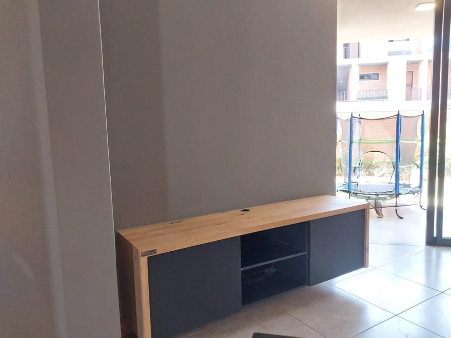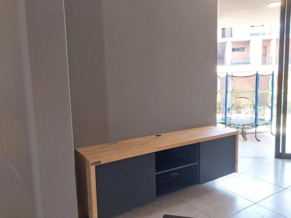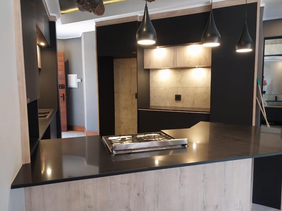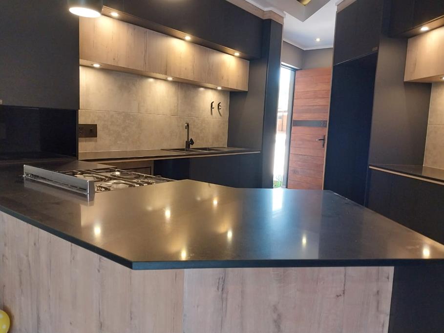 Muranti door finishes with aluminium frames, the cupboards have touch and press mechanisms, with PG Bisons matt black cupboard finishes combined with PG Brookhill finishes. The lounge and all rooms boasts hardekool top light fittings giving it an elegant African feel to the lifestyle unit.