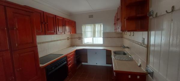 The kitchen, while traditional in style with wooden cabinetry, tiled countertops, and a backsplash, is fully equipped with a built-in oven and hob, offering all the essentials for daily meal preparation. One of the two bathrooms is an en-suite, enhancing privacy and convenience. The property boasts a well-maintained garden, providing a pleasant outdoor space, and includes a lapa for outdoor entertaining. With a paved driveway and two dedicated parking spaces, accessibility is straightforward.