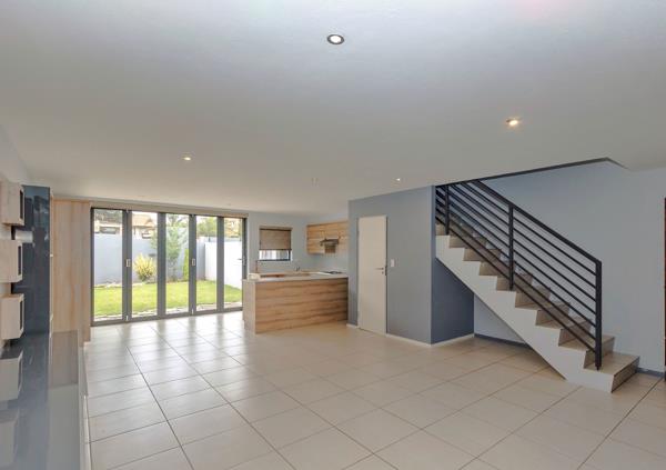 3 bedroom Pet Friendly Duplex apartment to let in Rynfield. This open-concept duplex has three bright bedrooms, two elegant bathrooms above, and a guest restroom below. The open-concept living spacekitchen opens up into a charming entertaining area. A lockable garage, heat pump and is equipped to use as a Laundry room. Situated near a hospital, shopping centers, schools, and major highways in the center of Rynfield. Definitely popular with little families. This duplex, which welcomes pets, is ready for you in a highly sought-after secure community.