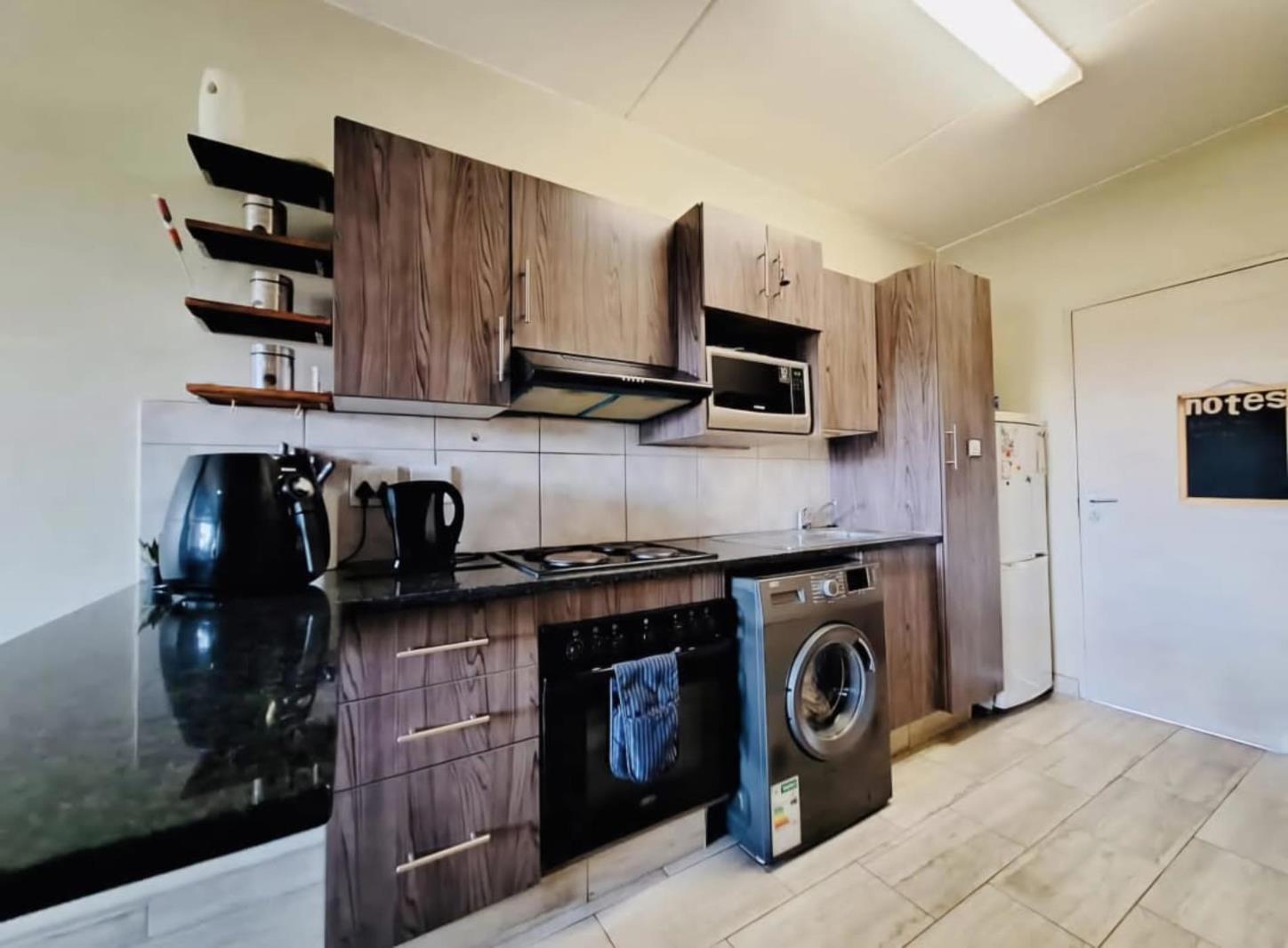 Spacious and well-maintained 3-bedroom ground floor unit situated in a secure complex in Rynfield AH. The unit offers an open-plan kitchen fitted with granite countertops, an electric hob, and oven, flowing seamlessly into the lounge area. The lounge opens onto a private enclosed garden perfect for a small pet.