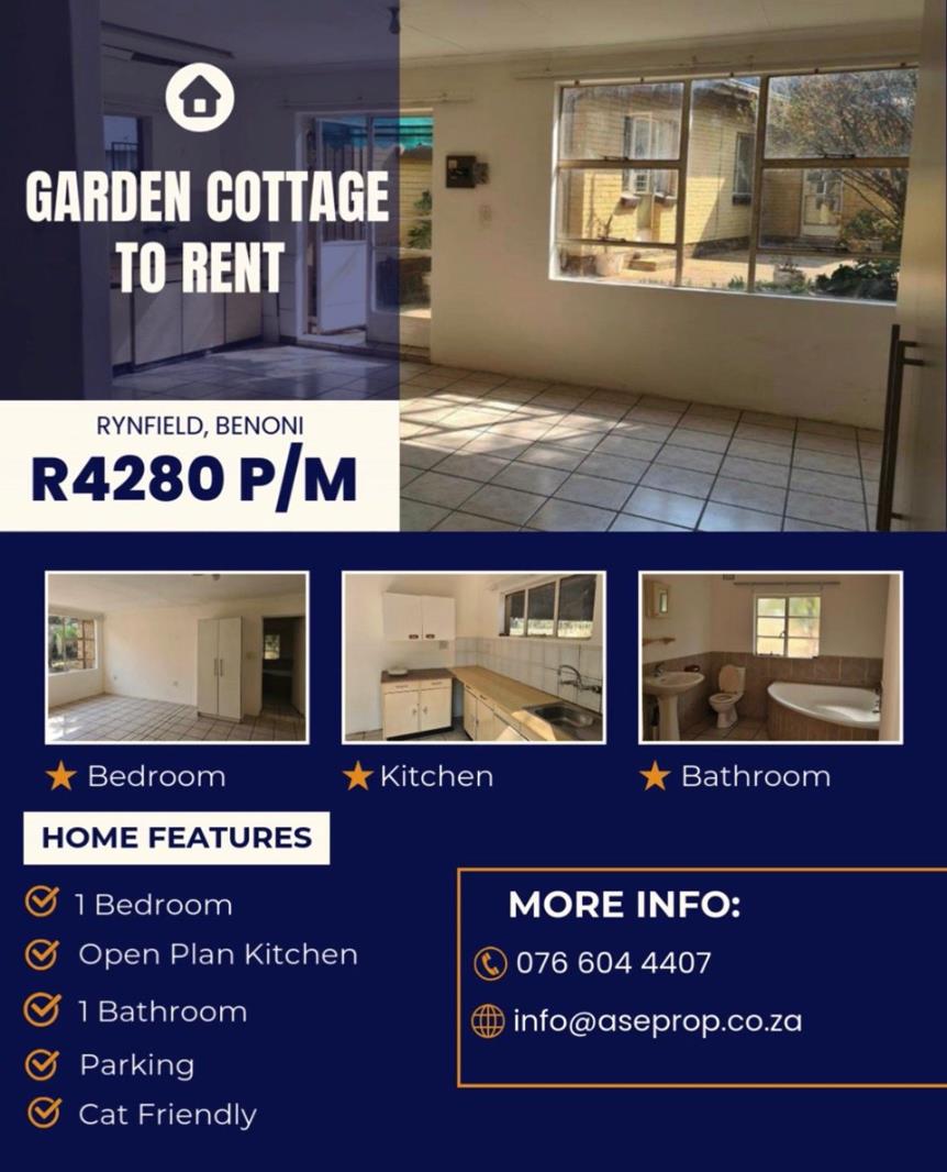 This lovely, secure garden cottage is situated in the beautiful suburb of Rynfield, Benoni.