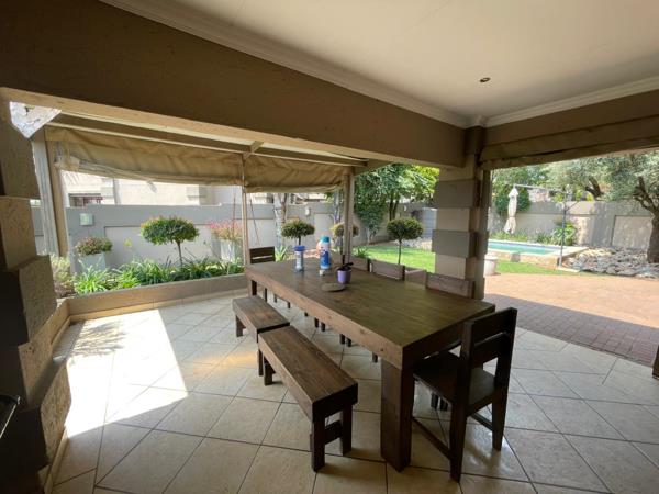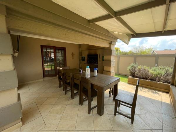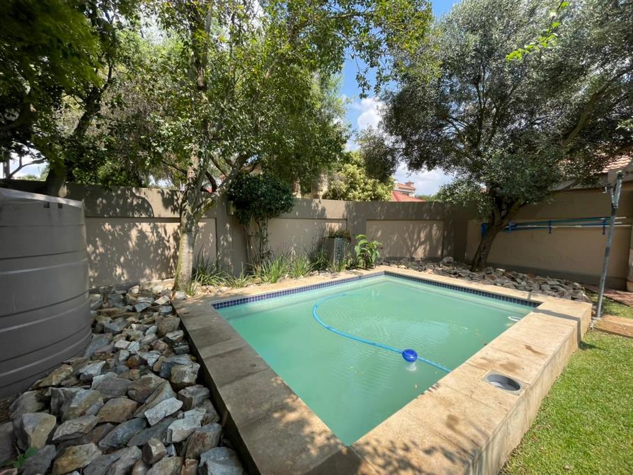 The entertainment area is fitted with a built-in braai and offers beautiful views of the garden. The garden is spacious with large amounts of space for your pets cats or dogs. The garden also features a newly installed swimming pool.