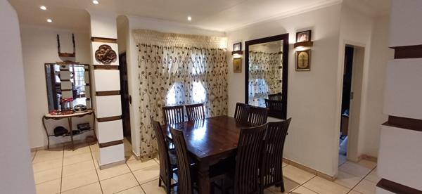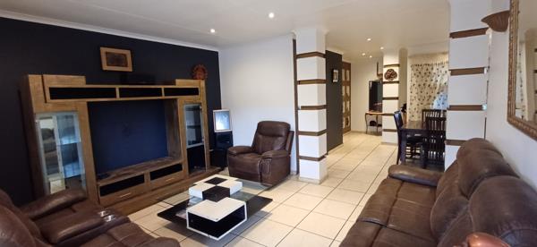 The open-plan dining and lounge area flows seamlessly to the back yard, where you will find a swimming pool and a covered patio complete with a built-in braai- Ideal for entertaining all year round.