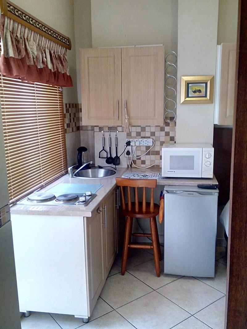 good health. In a 24 hour upper class security estate.Apartment has a single bed and a small kitchenette with ample bic, a 2 plate solid hob,microwave,tv ,fridge and washing machine .