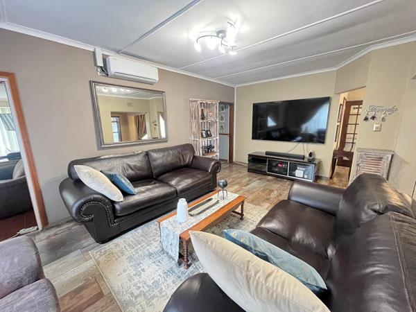 The kitchen is spacious and well-equipped with an electric stove, under-counter oven, and a separate scullery that comfortably accommodates a top-loader washing machine, dishwasher, and double-door fridge. From the kitchen, you flow into a tiled dining room and then into a large lounge with air conditioning, perfectly sized for a three-piece couch set. The lounge leads into a fun and stylish entertainmentbar area, ideal for hosting friends and family.