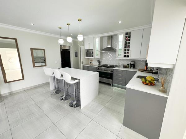 This amazing family home is set in a secure and tranquil estate with only 16 homes. This home was recently built and no expense was spared to create a homely environment which is upmarket and at the same time an entertainers delight. The open plan living area is colour co-ordinated with the beautiful floor tiles and modern kitchen with its island and breakfast nook, creating a seamless, open living area. The gas hob is complemented by a beautiful, matching extractor fan and modern cabinets finished in granite tops. The illuminated display cabinets liven up the entire kitchen against the backdrop of stylish splashbacks. The scullery offers additional cabinets and provides for all the modern appliances you may need. Both the lounge and dining room have spacious stacking doors leading to the heated pool, neat garden and private entertainment area. Ideal for entertaining on those lovely summer afternoons. With the modern gas fireplace and build-in braai in the living area it forms a perfect living and entertainment area with the pool and outdoor entertainment area. Upstairs are three light and airy bedrooms and two modern bathrooms with luxurious double vanities, stunning taps and frameless glass showers. All rooms have plenty BICs with well planned configurations. Even the mirrors are illuminated. The light pendants are tasteful and there are plenty outdoor wall mounted garden lights. All windows are aluminium with burglars bars on all opening windows and nicely finished curtain rail pelmets. Others have vertical blinds creating a private living area. Finally the home has a 5KvA solar system to guard against loadshedding and electricity prices.