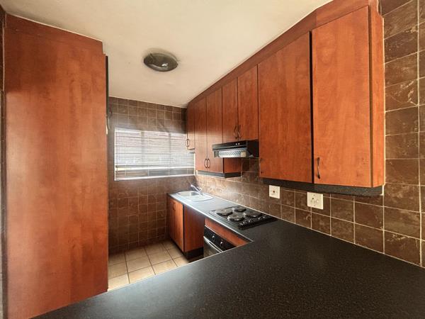 This unit is tiled throughout with built in cupboards and open plan living area.