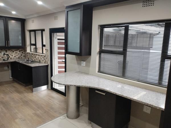Step outside to your private oasis with a spacious, immaculate garden, perfect for kids, pets, or enjoying the outdoors. Entertain effortlessly around the built-in braai and enjoy secure parking with a 2 car garage.