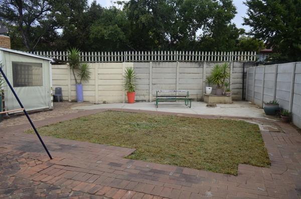 This spacious family home is one of three walled dwellings on a property. The main gate entrance is shared with the tenant from the flat. Each dwelling has their own water meter and prepaid electricity meter, Sewerage and refuse removal cost is shared between the three dwellings This lovely home offers an entrance area whereby you can move through to the kitchen or go to the dining room and separate lounge which leads out to a covered patio and braai area. From the lounge you can also access the kitchen or move down the passage to three bedrooms and two bathrooms. All bedrooms have built in cupboards with a linen cupboard in the passage. The kitchen has a built in table and plenty of cupboards for storage, and eye level oven.