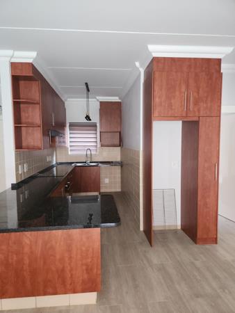This is a beautiful and very neat ground floor unit, newly painted entirely on the inside, fully tiled, set in a luxurious Complex, with a sparkling swimming pool. It consists of two bedrooms with built in cupboards as well as two bathrooms. Open plan lounge, dining area and kitchen with beautiful new cupboards, stove with glass hob and granite table tops. Lounge opens up to a patio and garden with built-in braai for private entertainment purposes. Very secured with 24/7 security post. Unit also equipped with an alarm! Rental amount does not include water, sewerage and refuse removal services. Prepaid electricity meter installed inside of unit.