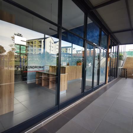 Laundromat, childrens play area, and tranquil park