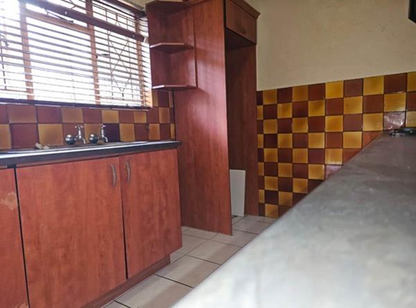 Features a retro-style kitchen with ample cupboard space, perfect for practical everyday living. The spacious living area is filled with natural light, creating a warm and inviting atmosphere.