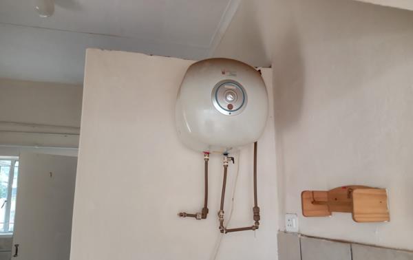 Bathroom with a shower, sink, and toilet. Own geyser.