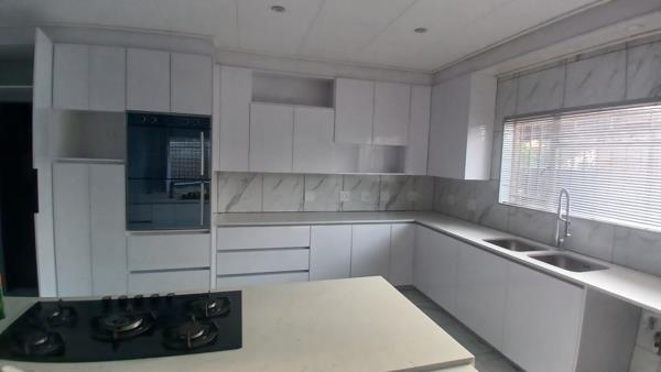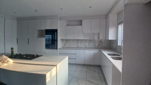 Modern kitchen with ample counter and cupboard space, designed for both convenience and style