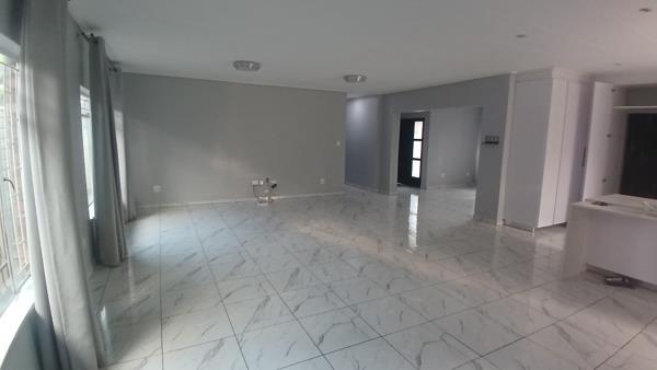 Open-plan lounge leading seamlessly into the kitchen, dining, and garage