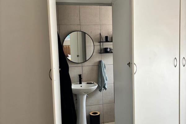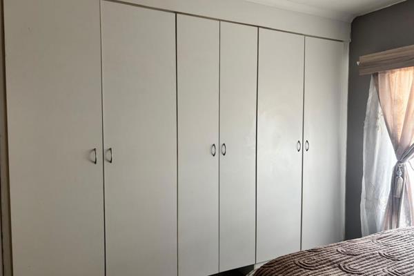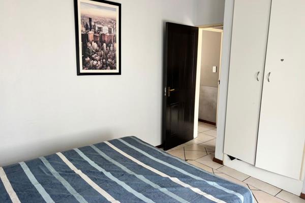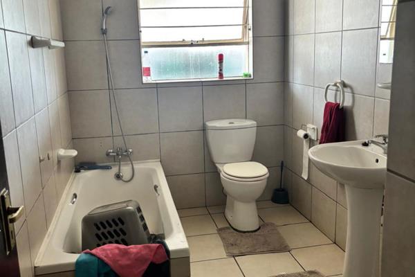 secure complex. Neat ground floor flat with built in cupboards in the three bedrooms and a fitted kitchen. the ensuite bathroom has a shower, basin and toilet and the family bathroom has a bath toilet and basin. the lounge opens onto a patio with abuilt in braai. ther is a small garden.The complex has a pool.