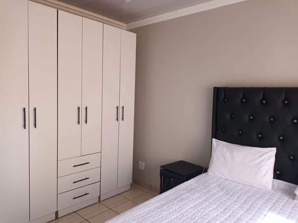 Neat and secure garden cottage. comfortable Two bedroom cottage with built in cupboards and fitted kitchen. open plan lounge and kitchen. Well sized bathroom . The rental is inclusive of water. This unit has a possibility of being rented out fully furnished at R8800.