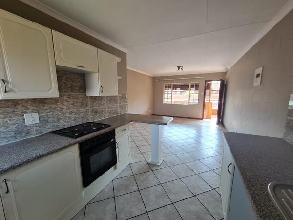 Neat Open-Plan Kitchen with ample cupboard space and room for appliances