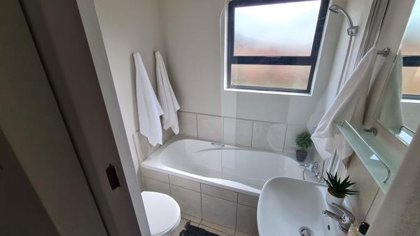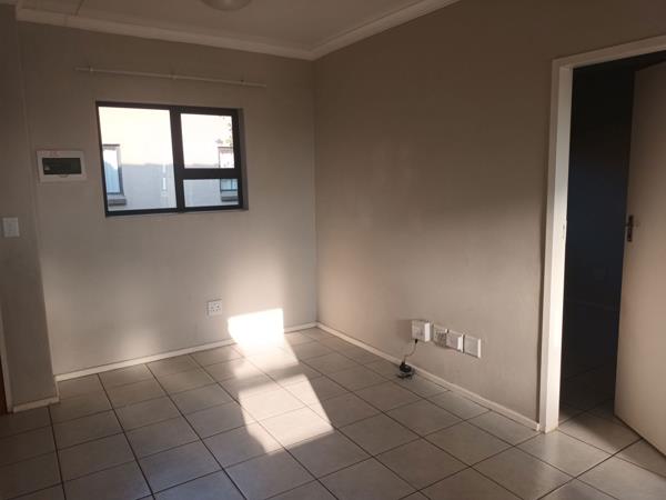 Secure Complex. Neat flat on top floor with built in cupboards in the two bedrooms and gas stove in kitchen with fitted kitchen units. Open plan lounge and kitchen. the bathroom has a shower over bath toilet and basin.