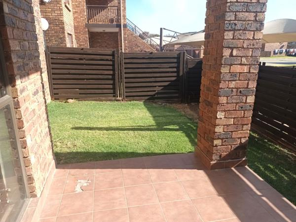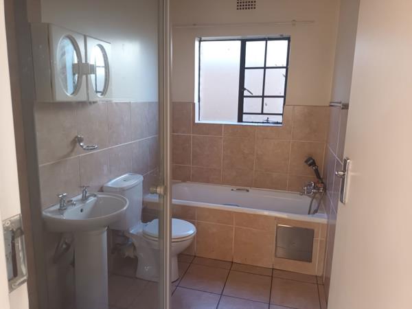 Secure Estate. Neat ground floor unit with built in cupboards in the two bedrooms and fitted kitchen. The bathroom has a bath and shower. small garden and the complex has a pool and squash court. the complex is pet friendly and has 24hour security.