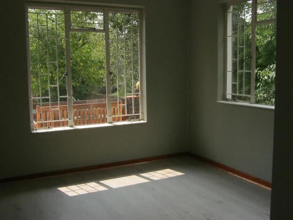 Fully tiled bathroom and a very large kitchen with lots of cupboards.. The balcony overlooks a beautiful garden with lots of trees. The garage houses one medium size car.