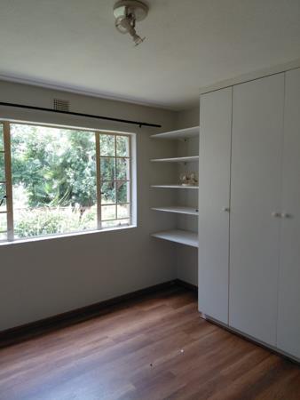 2 Neat bedrooms with built-in cupboards, and a bathroom with a bath and shower.