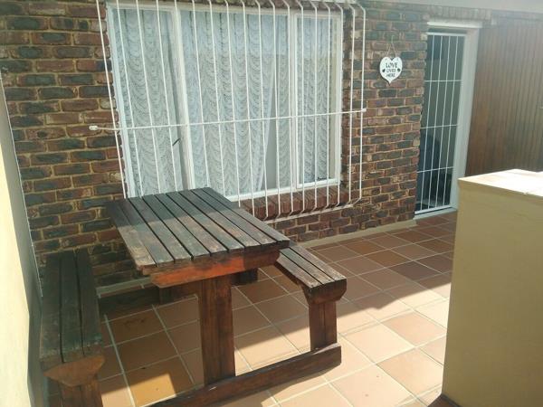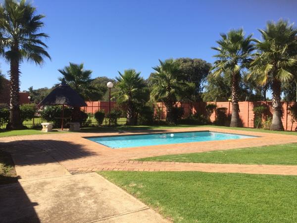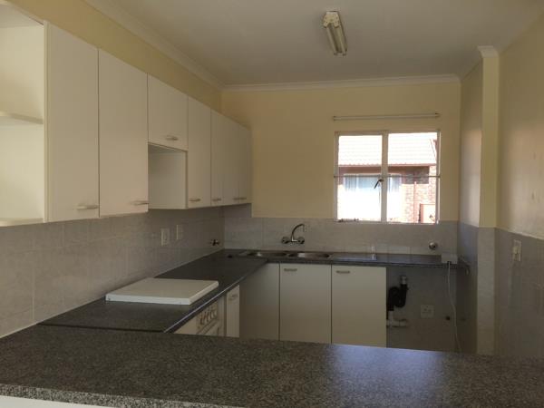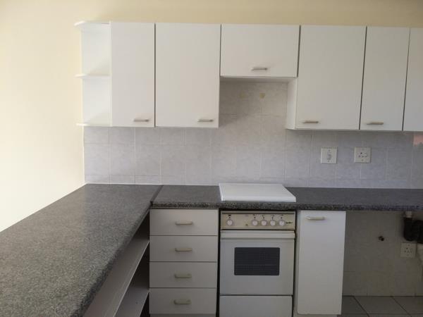 Neat upstairs apartment consists of 2 Bedrooms and 2 Bathrooms. Open plan spacious kitchen with lots of cupboards and lounge. Bedrooms have laminate floors and the living area is tiled. 2 Parking bays, 1 Covered and 1 Open bay. Pre paid electricity, water is metered so payment according to usage and refuse charged over and above the rent. Complex offers swimming pool and children''s playground area. 24 Hour security guards. Electricity is pre paid, water, sewerage & refuse charged over and above the monthly rental. Regret NO pets allowed. Occupation 1 March 2026.