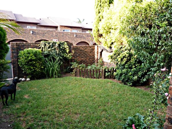 This very spacious duplex is situated in a small, pet-friendly complex on a quiet street. Downstairs offers an entrance hall, guest bathroom, open plan lounge and dining area with sliding doors leading to a spacious garden with easy edge for the flower beds. The kitchen is spacious and light with a separate courtyard. Upstairs has 3 spacious bedrooms all with built-in cupboards and 2 bathrooms one of which is main-en-suite.
