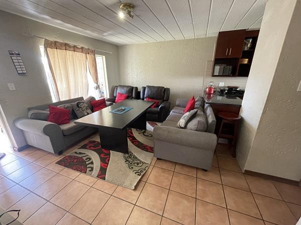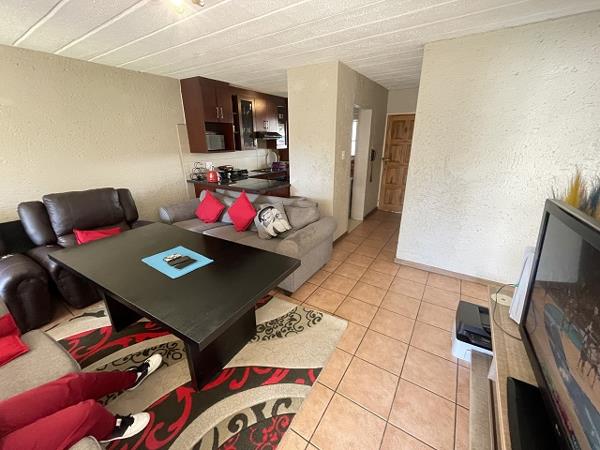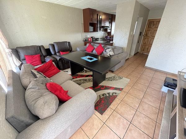 Lovely garden unit with 2 bedrooms and 2 bathrooms in a secure and very neat complex with 24 hour guarding. Nicely fitted kitchen. Enclosed front patio which could be used as a study when working from home. Within a boomed area and near to Karaglen shopping centre and schools. 1 under cover parking and 1 open parking.