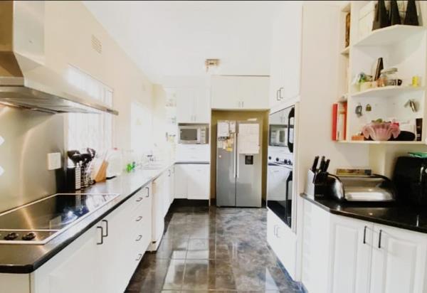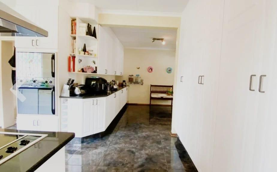 - A fully fitted modern kitchen with stack doors leading to a large entertainment area with an indoor fireplace
