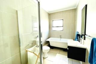 The living room flows seamlessly onto an enclosed patio and private landscaped garden. This unique outdoor space offers the perfect setting for morning coffee, weekend braais, or simply relaxing after a long day.