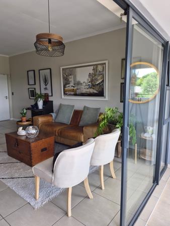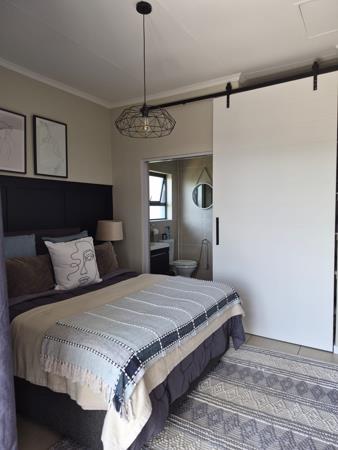 The bathroom includes a trendy barn-style sliding door and offers ample storage space. The well-appointed bedroom is spacious and filled with natural light, while the apartment boasts stunning views over Modderfontein, completing the luxurious feel of this home.